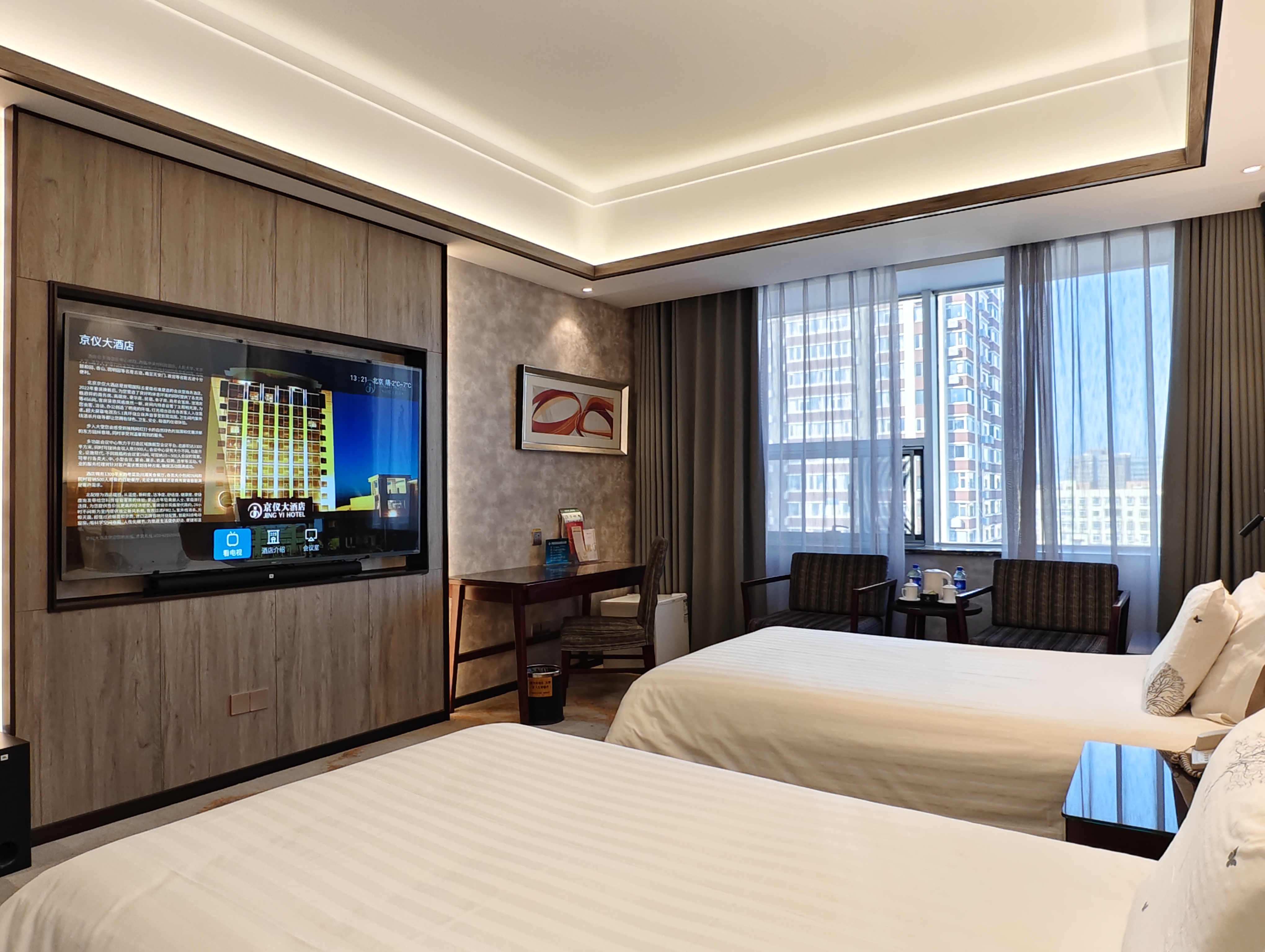 The rooms feature a brand-new, sleek and elegant decor. The main lighting sources are precisely tailored to office and negotiation scenarios, providing bright and glare-free illumination. Equipped with large-screen TVs and 5.1 true surround sound systems, they meet the dual needs of business presentations and leisure relaxation. The bathrooms are upgraded with UV disinfection, and the 24-hour uninterrupted fresh air system effectively filters PM2.5, bacteria, and impurities, safeguarding the health of guests. Smart electric curtains and humanized spatial layout allow seamless switching between work and rest, offering you a green, hygienic, safe, and harmonious accommodation environment. The smart guest rooms in the North Annex Building are specially designed for young business travelers, focusing on temperature, cleanliness, and convenience. Equipped with imported brand surround sound systems, smart electric curtains, as well as health-focused configurations such as UV disinfection and light sterilization, they offer outstanding cost-performance, making them ideal for long-term business trips or small-scale business travels, balancing comfort and economy.